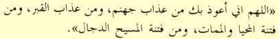 "Ô Seigneur (Allah) ! Je Te demande refuge et protection contre les supplices de l'Enfer, contre les souffrance du tombeau, contre les séductions de la vie et de la mort, et contre la tentation de l'Antéchrist".