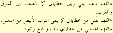 "Ô Seigneur (Allah) ! Lave-moi de mes péchés avec de l'eau, de la glace et de la neige".