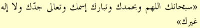 "Gloire à Toi, Ô Seigneur (Allah); louanges à Toi; puisse Ton divin Nom être béni; puissent Tes Bienfaits s'élever bien haut; certes, il n'y a pas d'autre divinité à part Toi".
