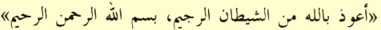 "Je cherche refuge auprès d'Allah et Sa protection contre Satan le maudit, le lapidé; Au nom d'Allah, le Tout Clément, le Tout Miséricordieux".
