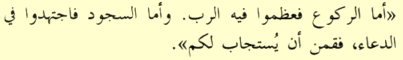 "Dans la posture d'inclination, invoquez la Grandeur du Seigneur (Allah); mais dans la prosternation à terre, appliquez-vous à invoquer Allah de tout votre coeur, d'implorer Son pardon, Ses grâces et Ses bienfaits, car il est fort possible que vos voeux soient agréés".