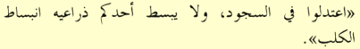 "Tenez-vous droit dans la prosternation, et qu'aucun de vous n'étende ses bras et ses avant-bras sur le sol, comme le chien".