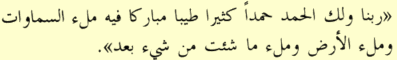 Prononciation : "Rabana wa laka alhamd, hamdan kathiran tayyaban moubaarakan [...]"