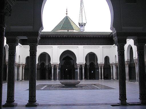 Avant même l'apparition de la salle de prière, les premières mosquées étaient composées d'une cour avec sur au moins un de leur côté une colonnade couverte de feuilles de palmiers. Par la suite, la cour a presque toujours subsisté comme élément architectural.